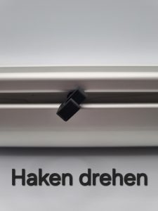 Einsteckhaken einstecken und um 90° drehen. Schon ist er fixiert.