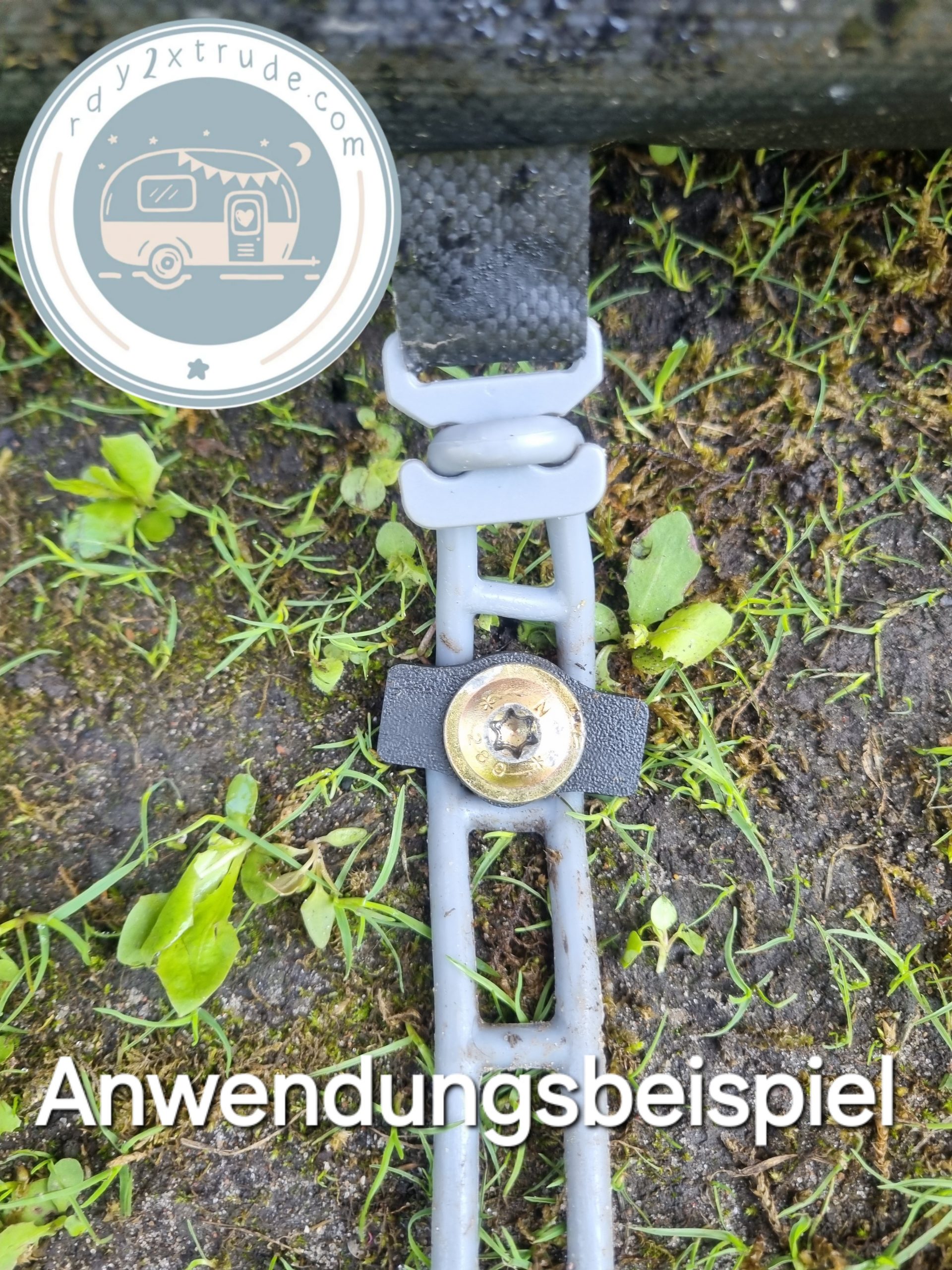 Ebenso ist dieses Befestigungselement für Seile/Bänder bis zu einem Durchmesser von 6 mm geeignet.