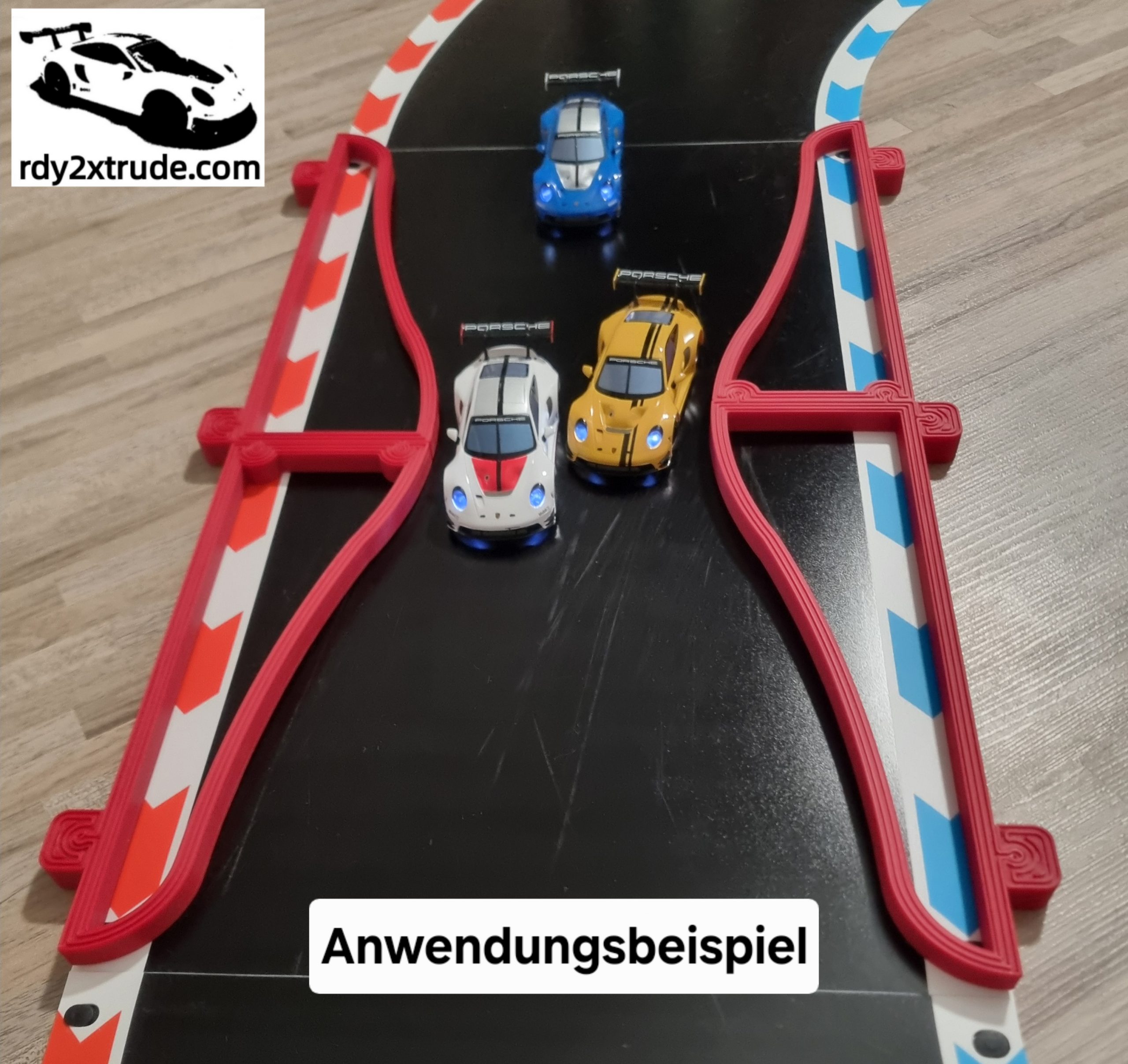 - Am Besten ist es, wenn vor und hinter der Boxengasse ein gerades Fahrbahnteil verwendet wird.
