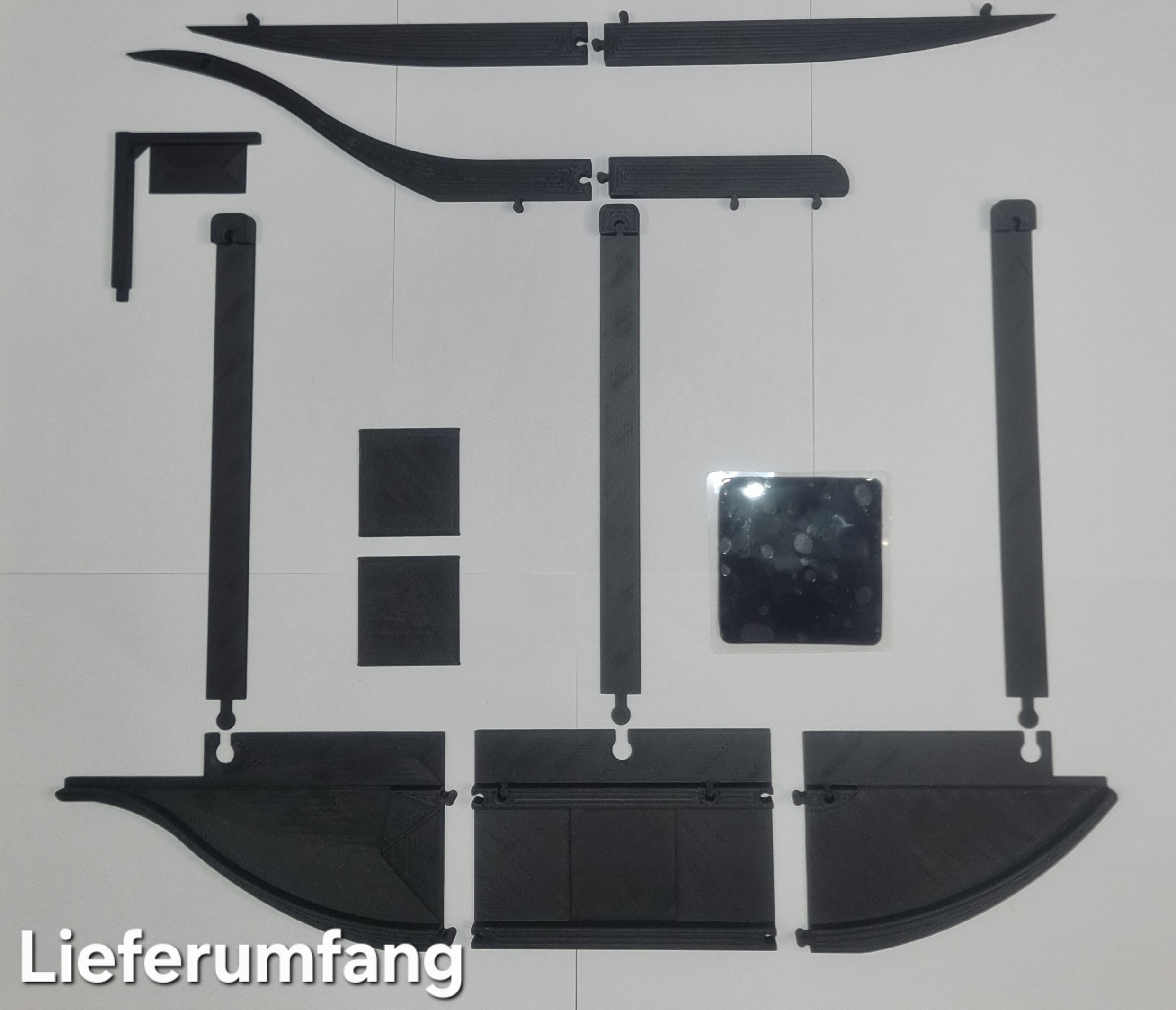 Die Teile sind 3D gedruckt und weisen die typischen Merkmale des Druckverfahrens auf.