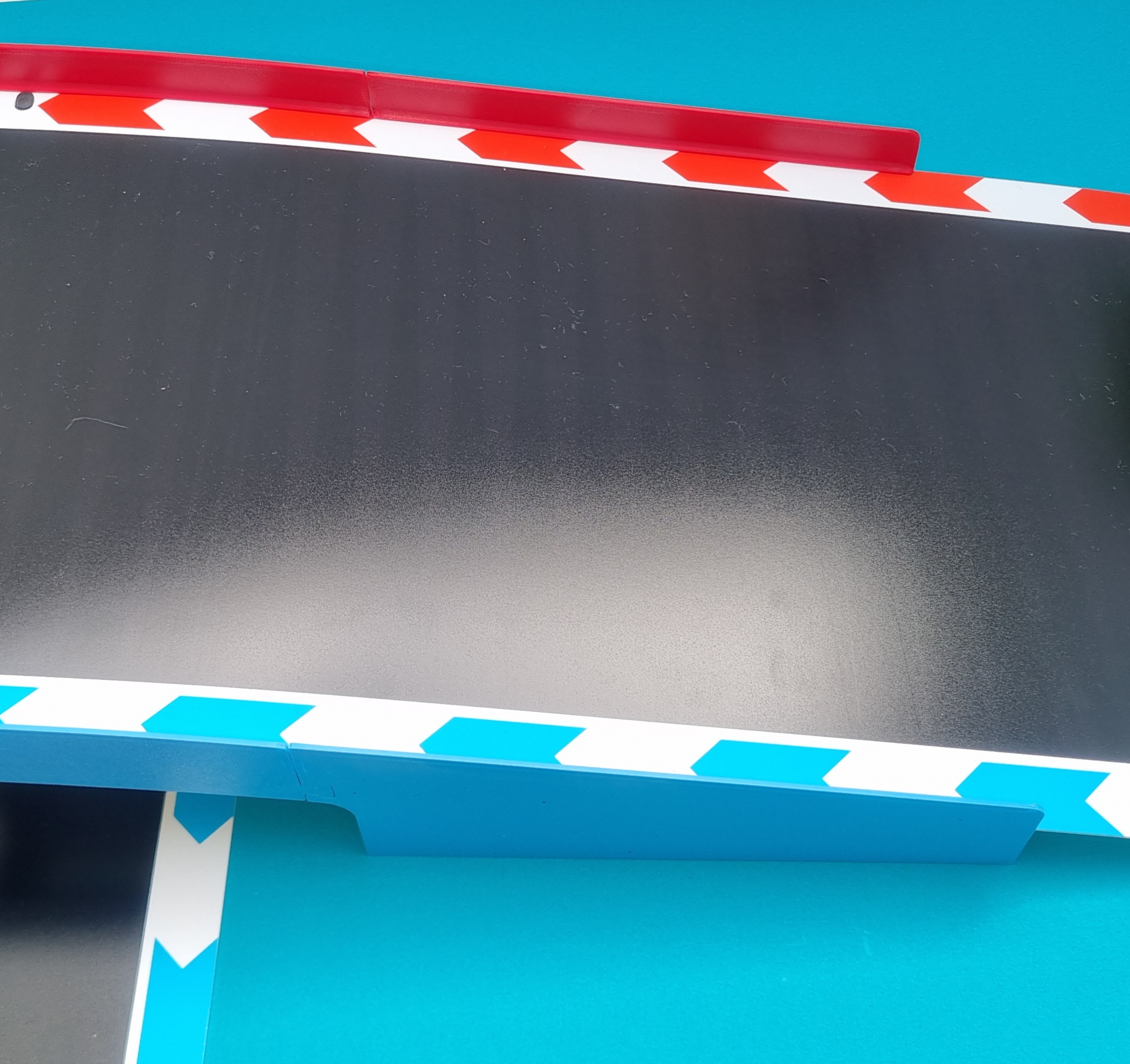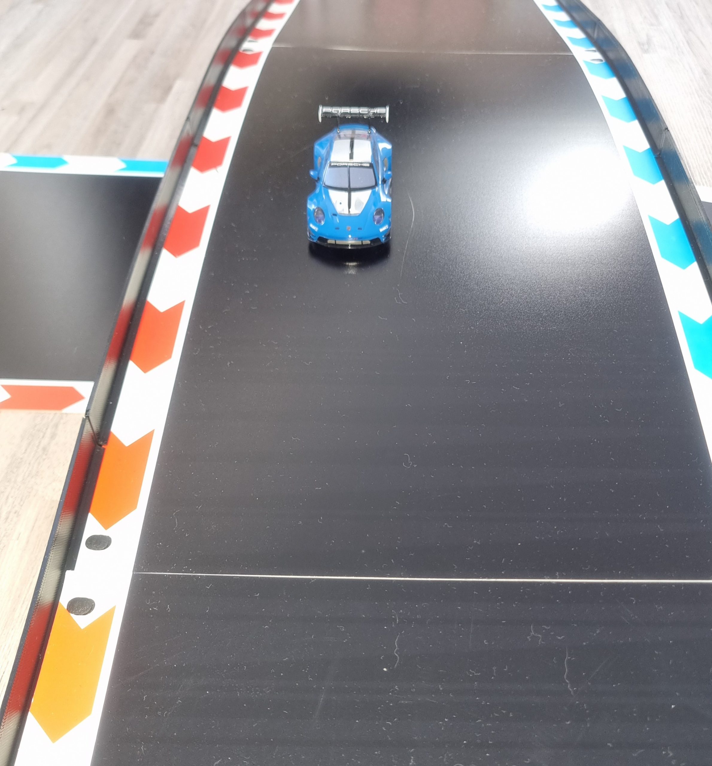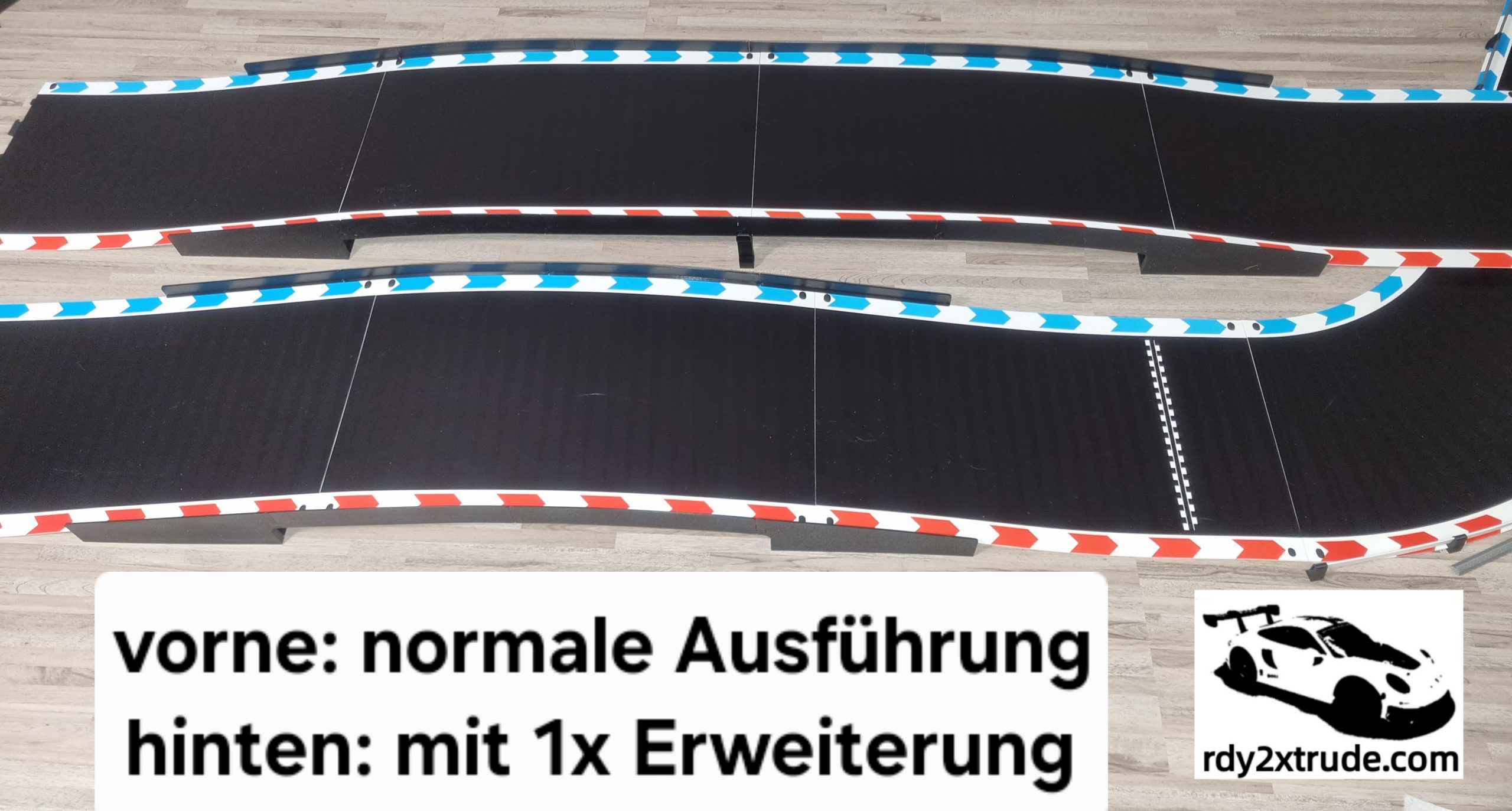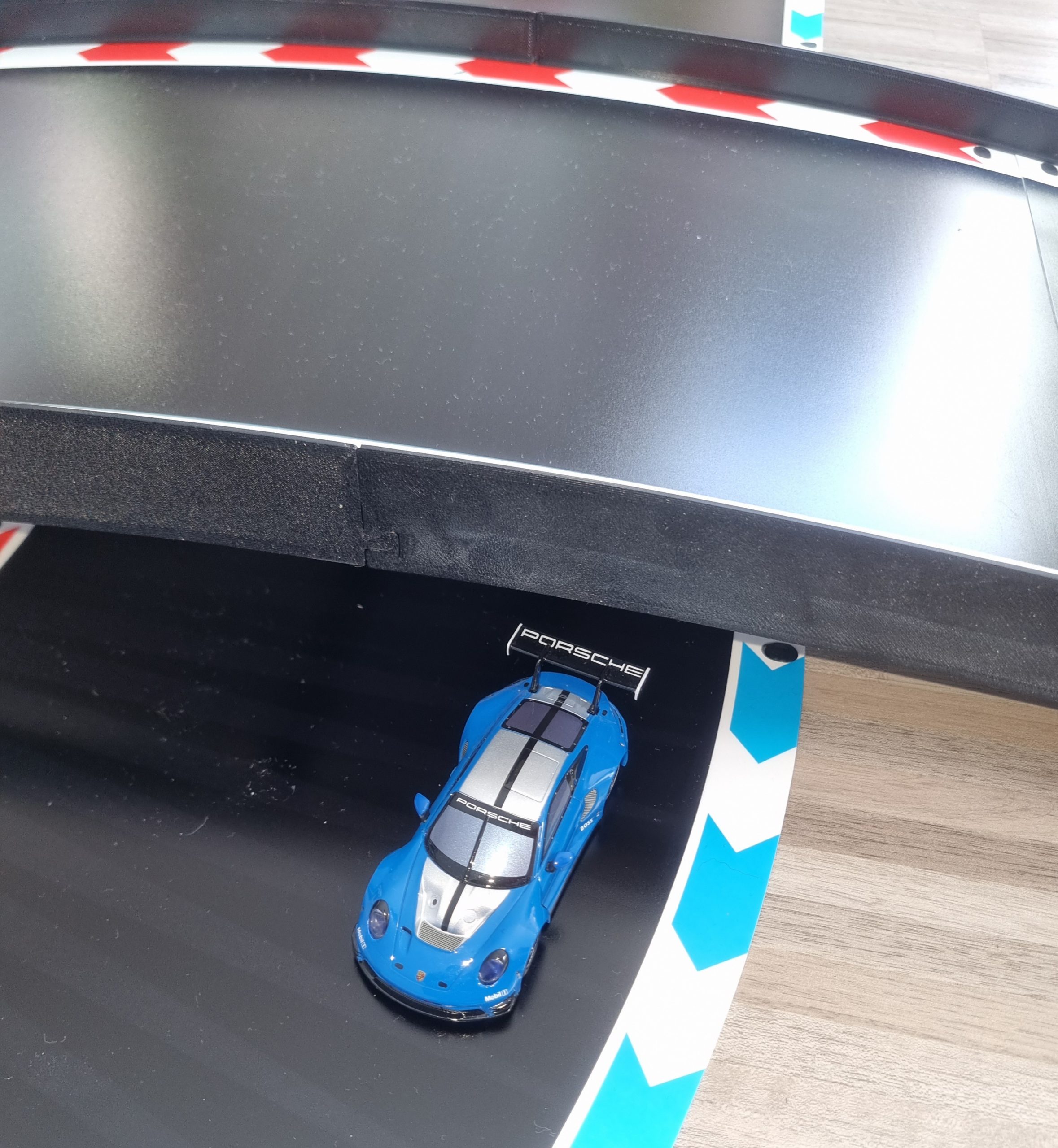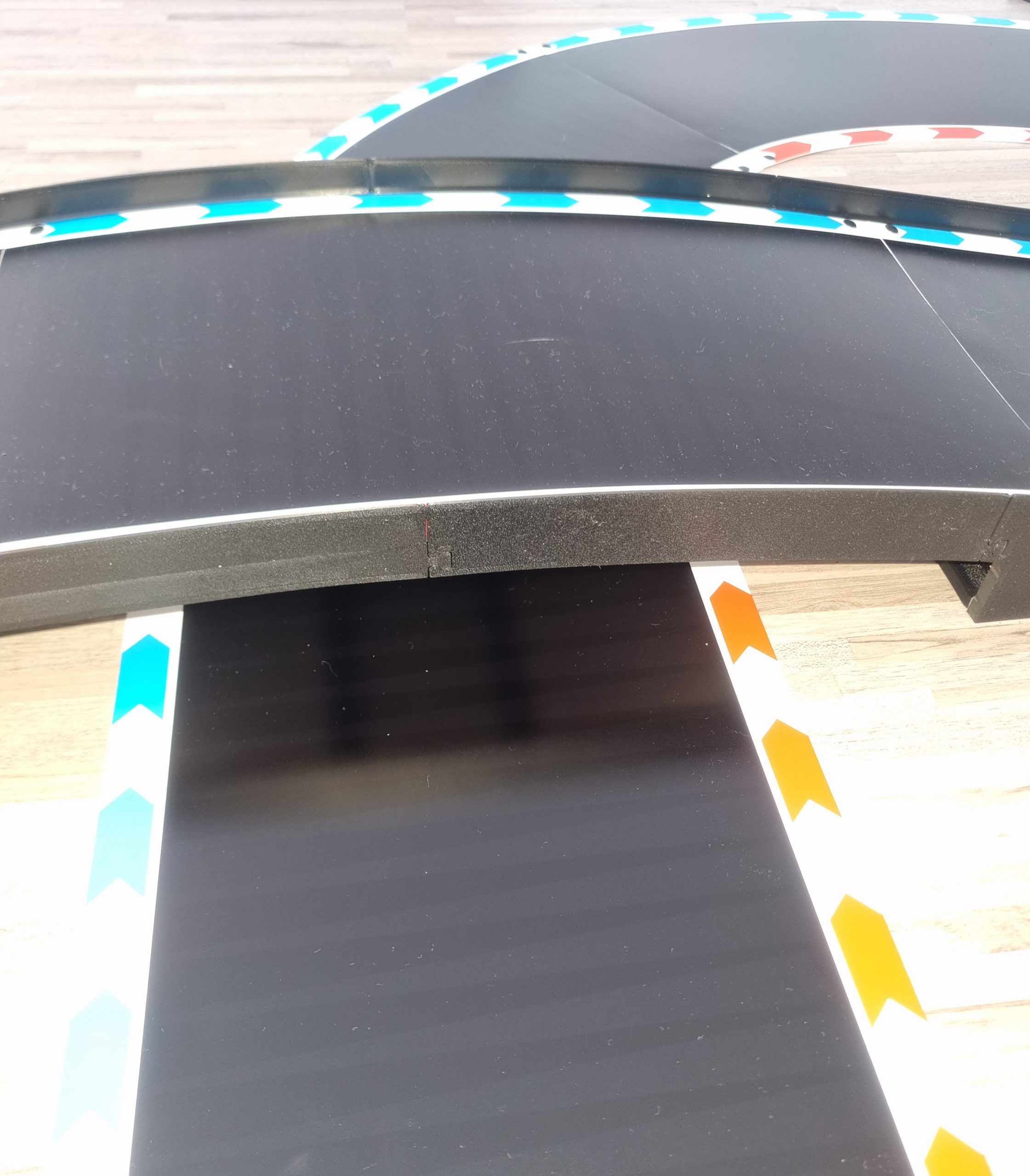 Mit dieser Brücke kann man sehr schöne Fahrbahnüberführungen erstellen. Der Auffahr- und Abfahrwinkel wurde so eingestellt, dass ein problemloses passieren möglich ist. Auch ist ein Anfahren am Berg möglich. Mit dem Erweiterungsset ist es theoretisch möglich die Brücke unendlich mit Geraden Fahrbahnteilen alle 40 cm zu verlängern.