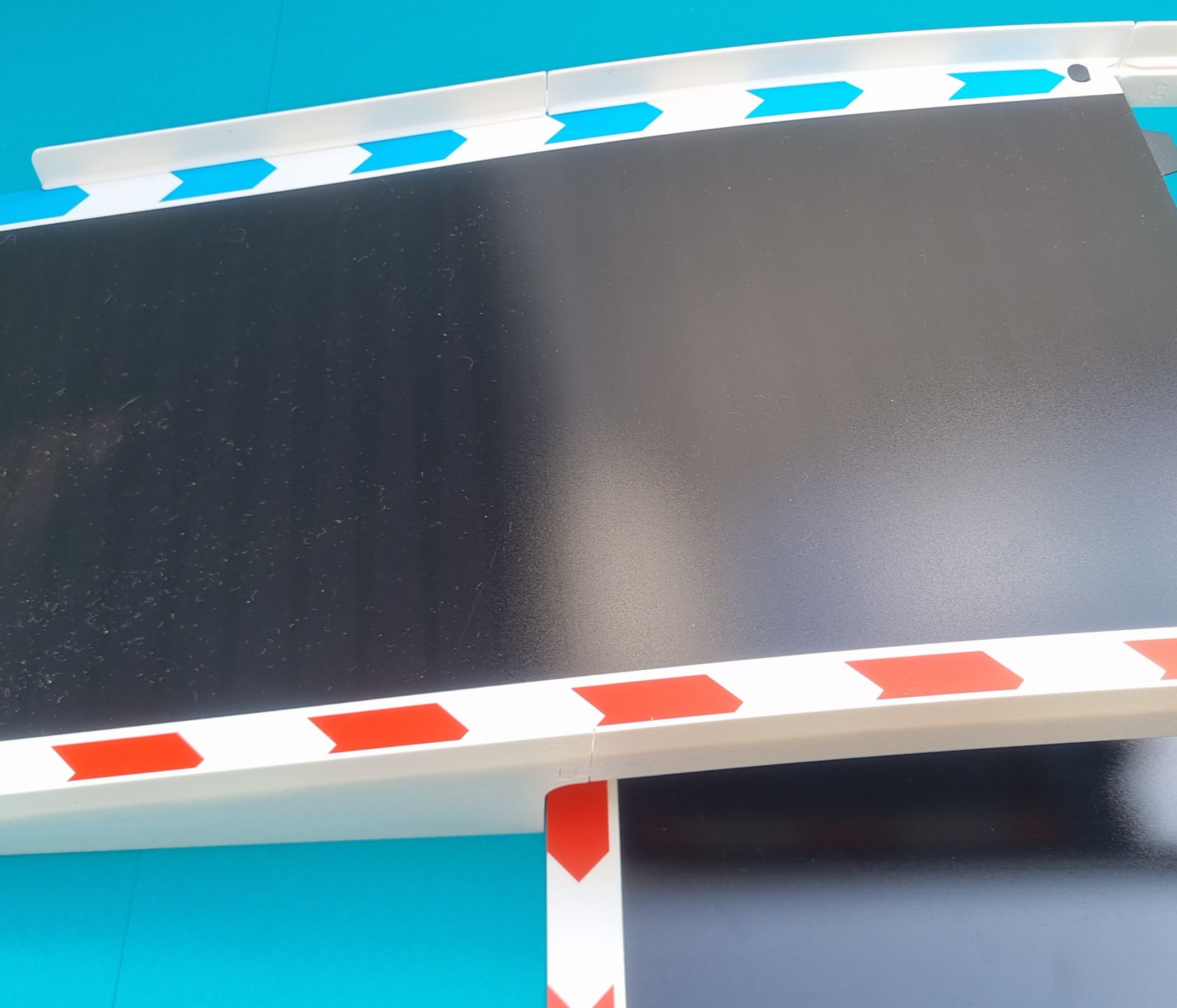 rot / blau – 1 Satz Seitenteile wird in rot, der andere in blau gefertigt, die Querverbinder werden in schwarz gefertigt