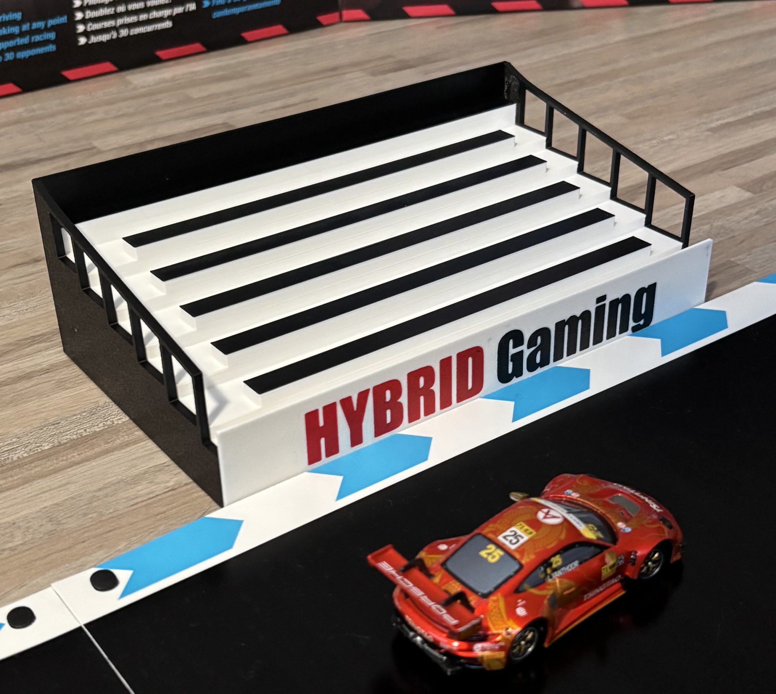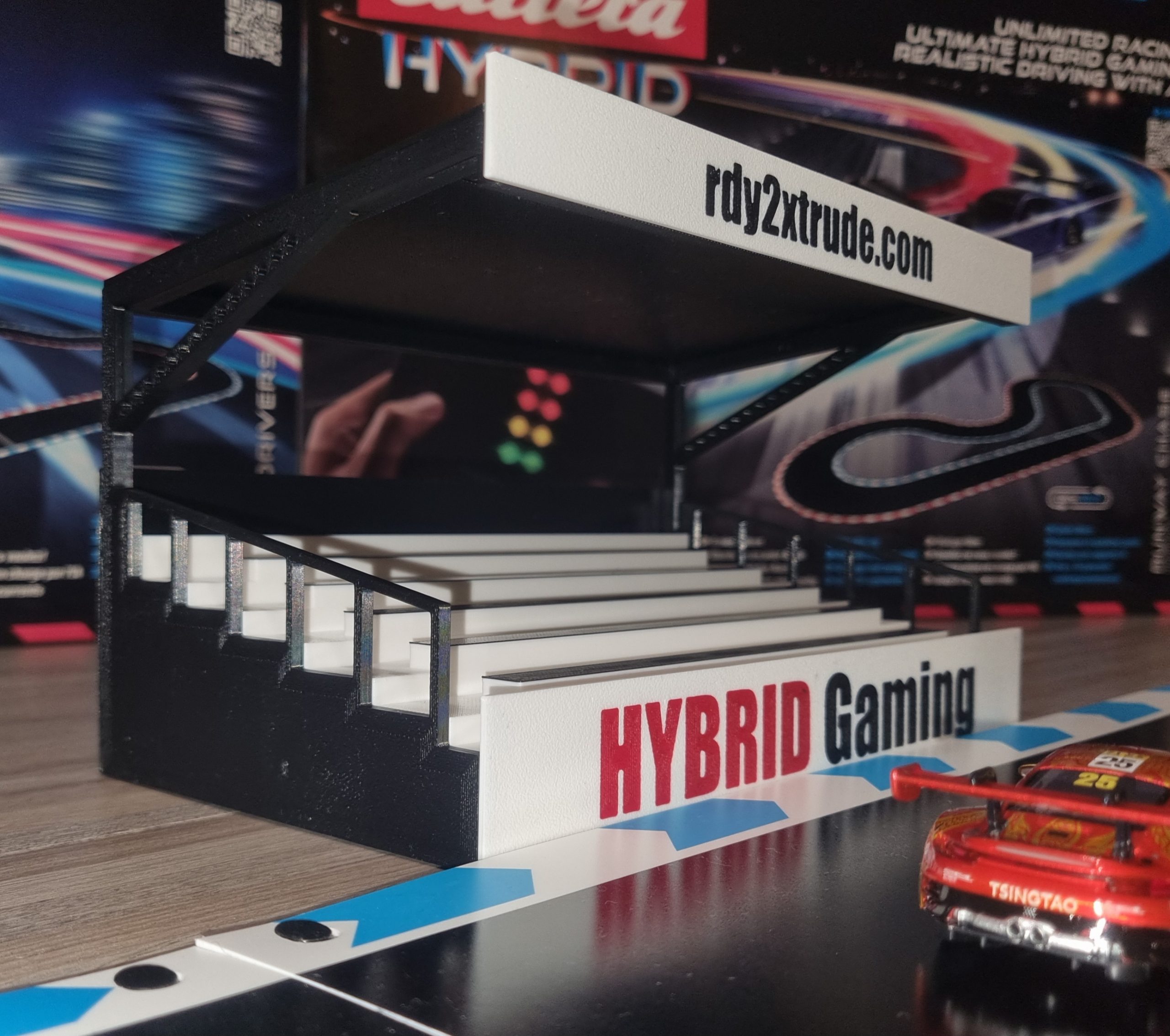 Die Tribüne erweitert die Carrera HYBRID Bahn um ein weiteres Dekoelement.
